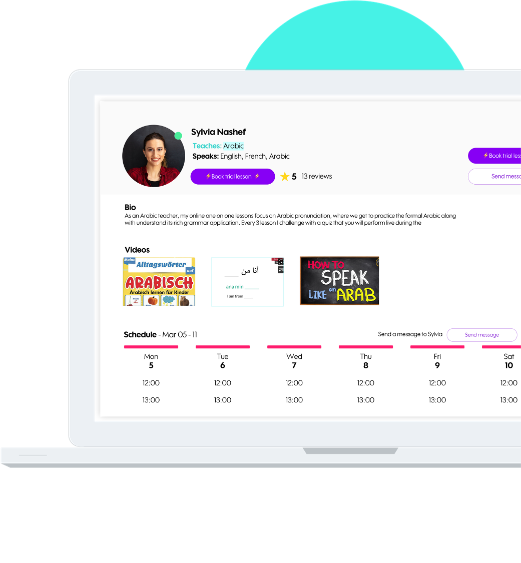 You can chat with teachers, interview teachers via video call, view their profiles, ratings and reviews. When you find the desired teacher, simply click on Book lesson and select the suitable time slot for you.